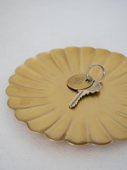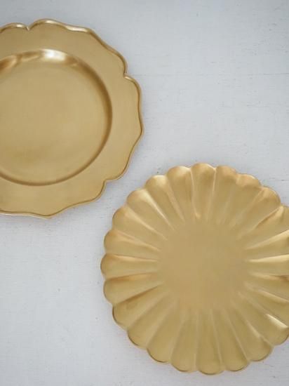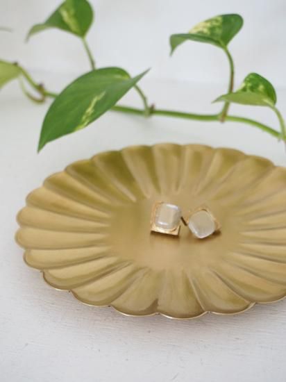 花びらのウェーブが美しいブラスのトレイ。艶のない、少しくすんだブラスの