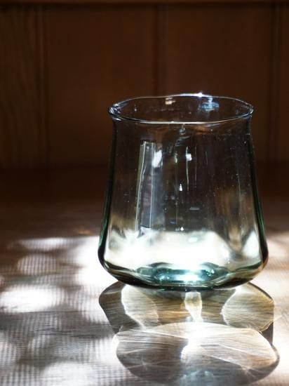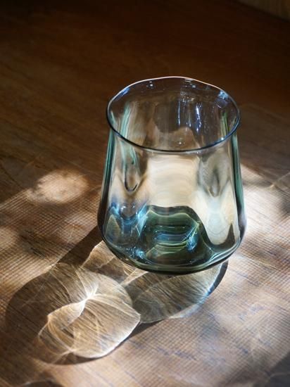 落ち着いたスモークブルーの色味に緩やかに面取りされた