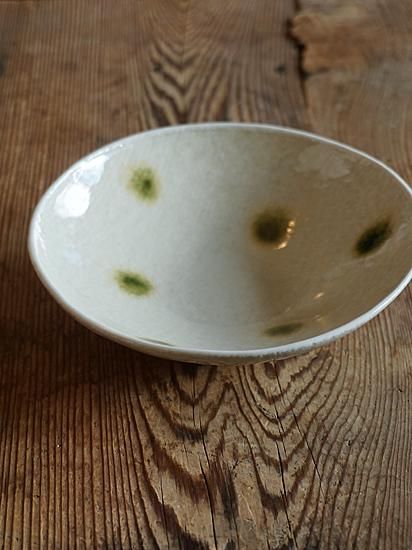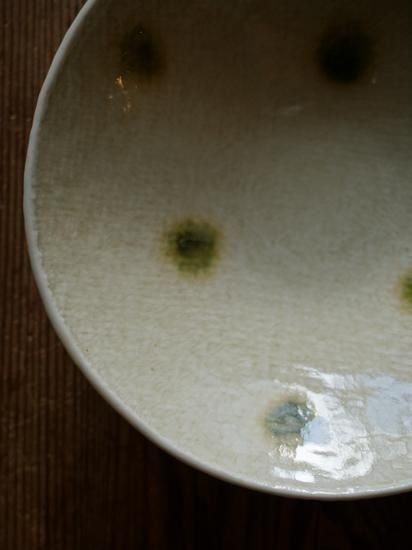 やわらかな黄色の素地に淡い緑のドットの優しい色合い。